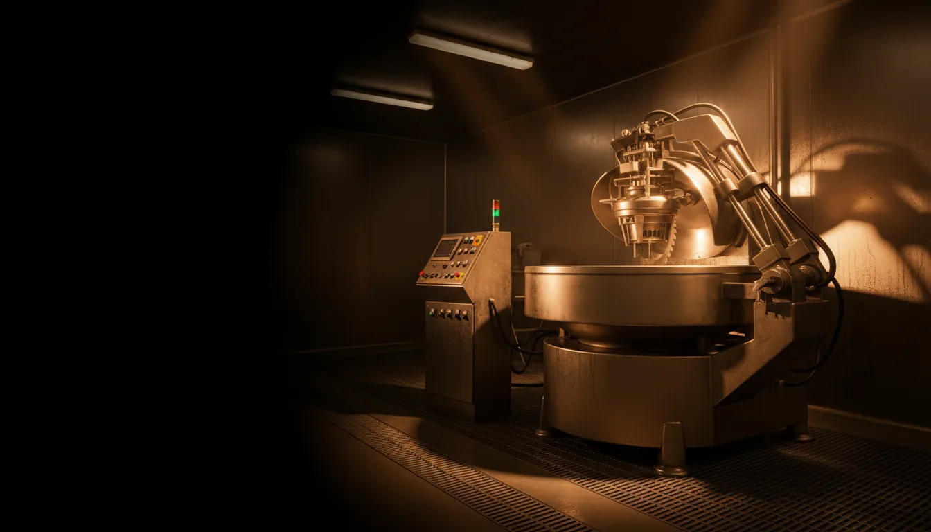 Todo en un solo proceso con control de temperatura integrado. Ideal para embutidos, patés, hamburguesas y masas cárnicas finas.